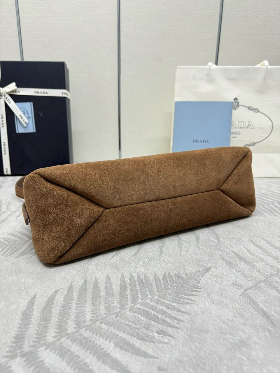 Borsa Prada in suede marrone.