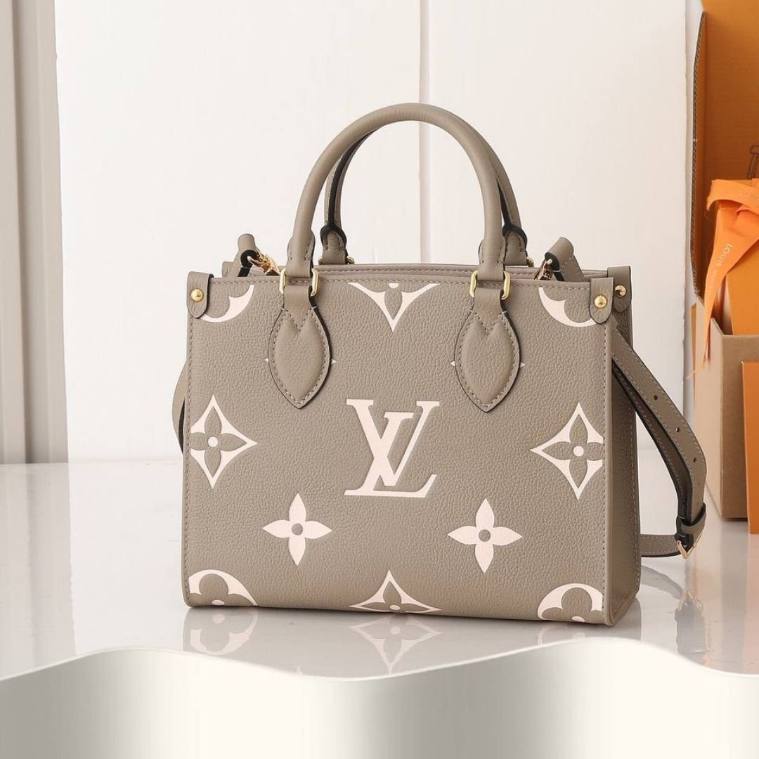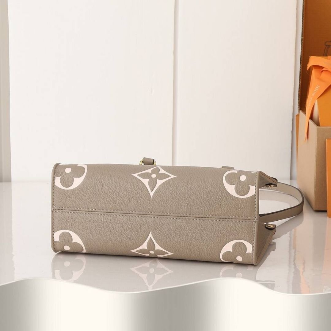 Borsa Louis Vuitton OnTheGo PM grigio tortora e crema 25 cm