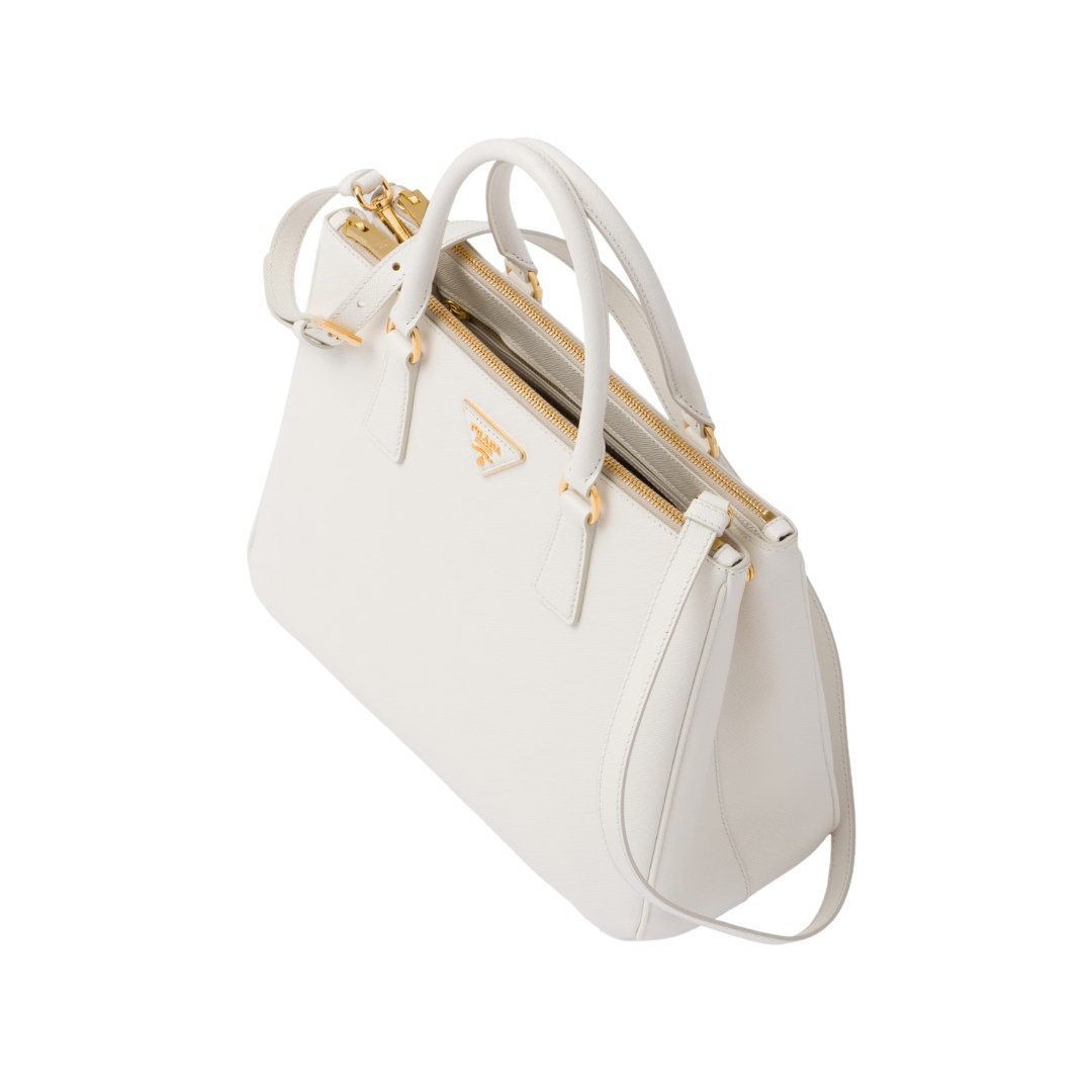 Borsa Prada Galleria grande in pelle Saffiano bianca 24 cm