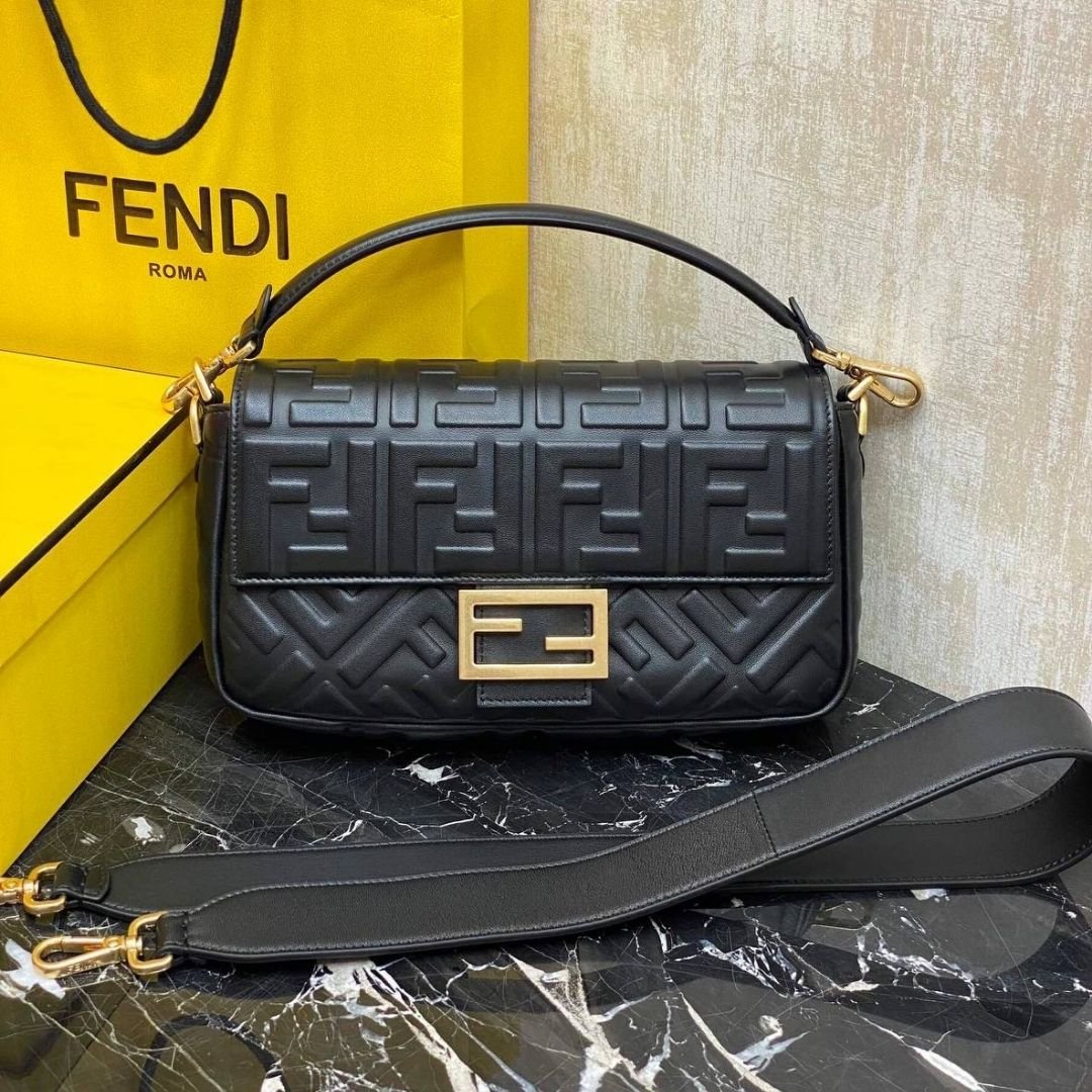 Mini Borsa Fendi Baguette in pelle nera 27 cm