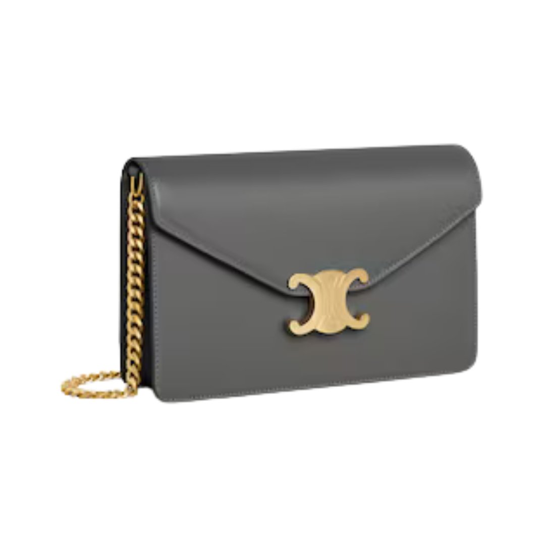 Borsa Celine Margo con catena in pelle grigia 19.5 cm