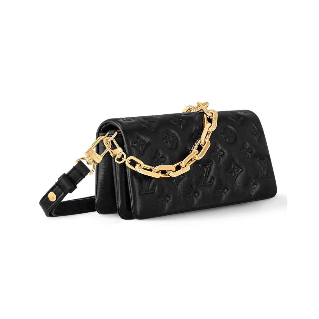 Borsa Louis Vuitton Coussin Hobo MM Pelle Monogram Trapuntata Nera 38cm
