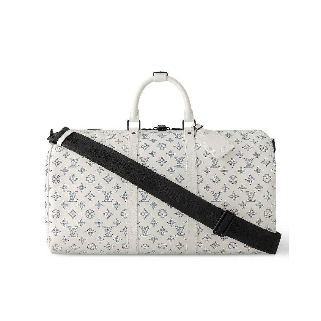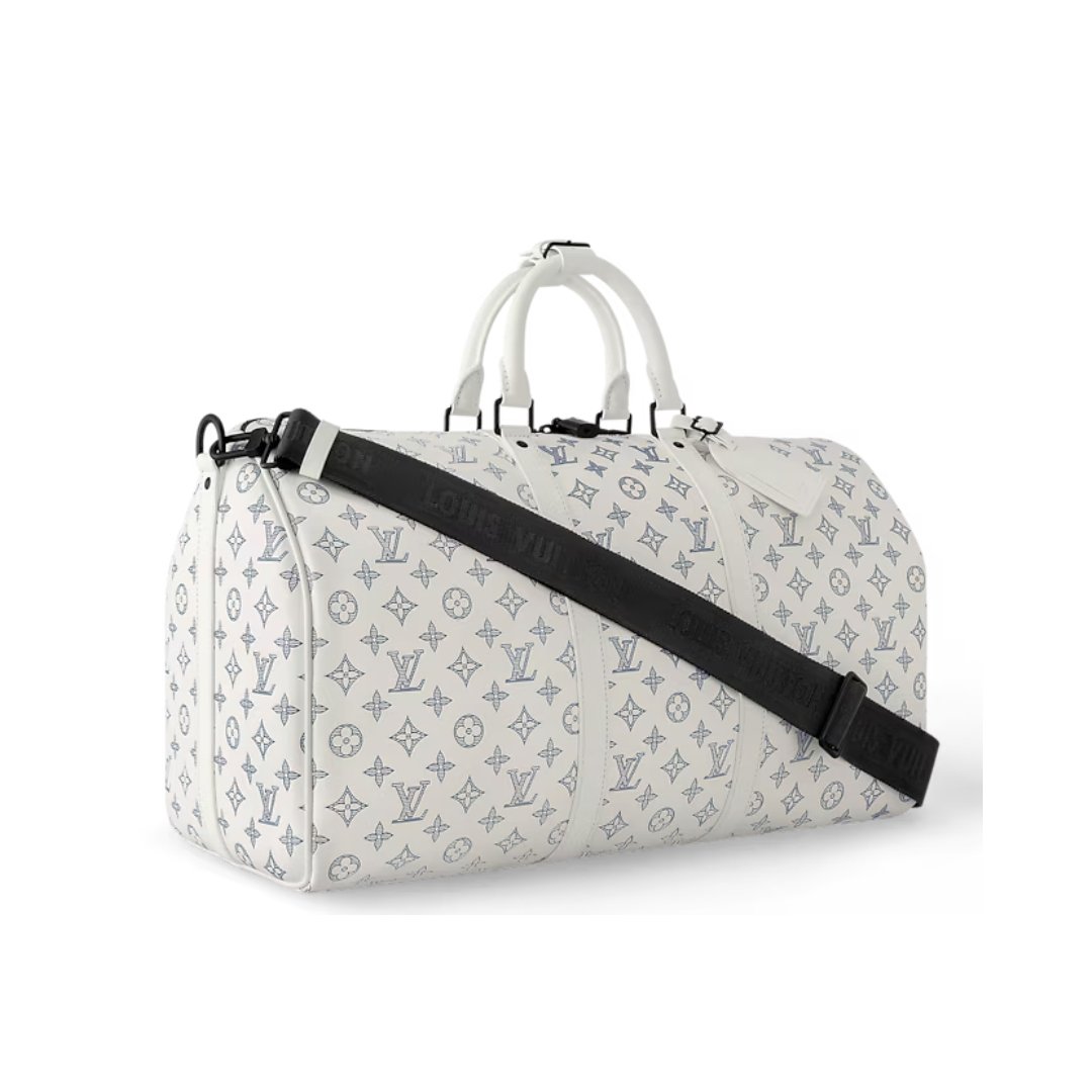 Borsa Louis Vuitton Keepall Bandoulière 50 in Monogram bianco