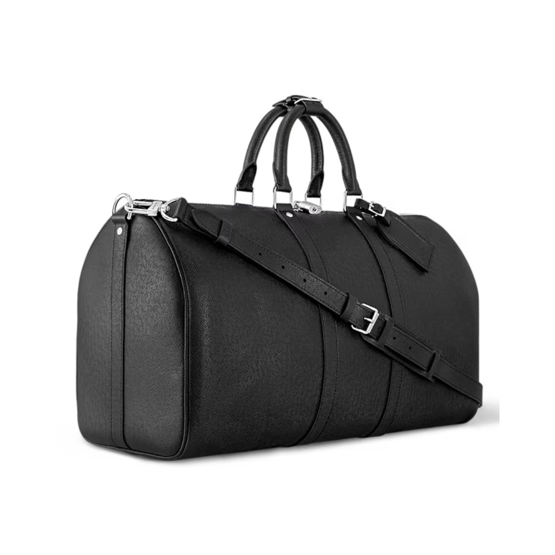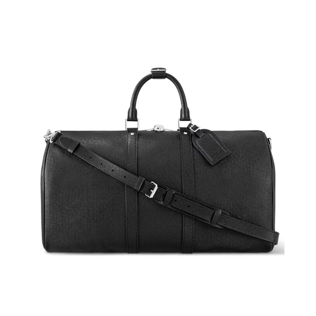 Borsa Louis Vuitton Keepall Bandoulière 50 in pelle Taiga nera