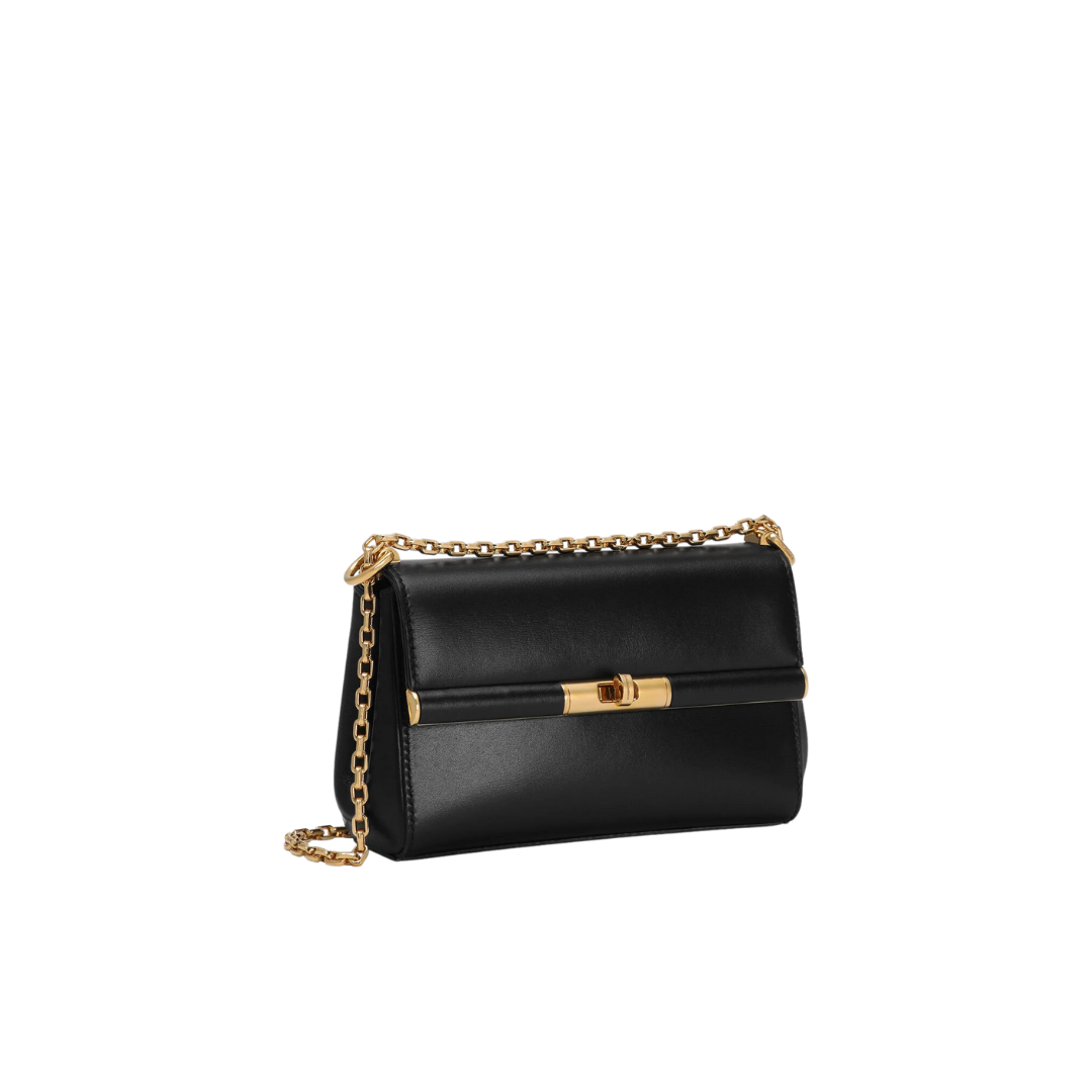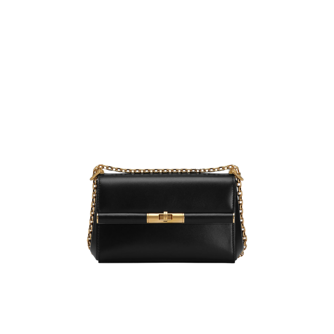 Borsa Marlene Micro in pelle nera con catena dorata