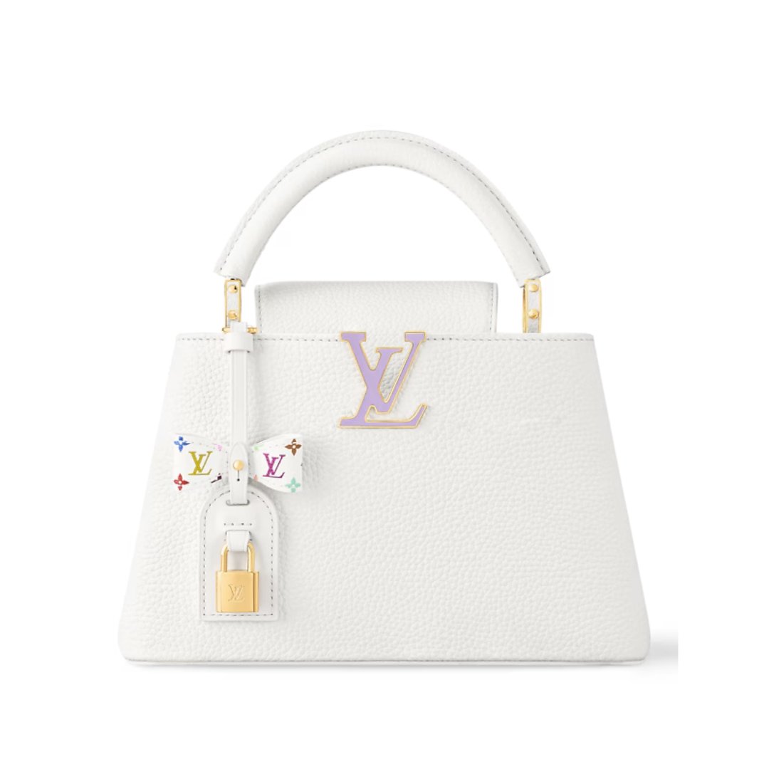 Borsa Louis Vuitton Capucines BB bianca con dettagli Monogram multicolor 27 cm