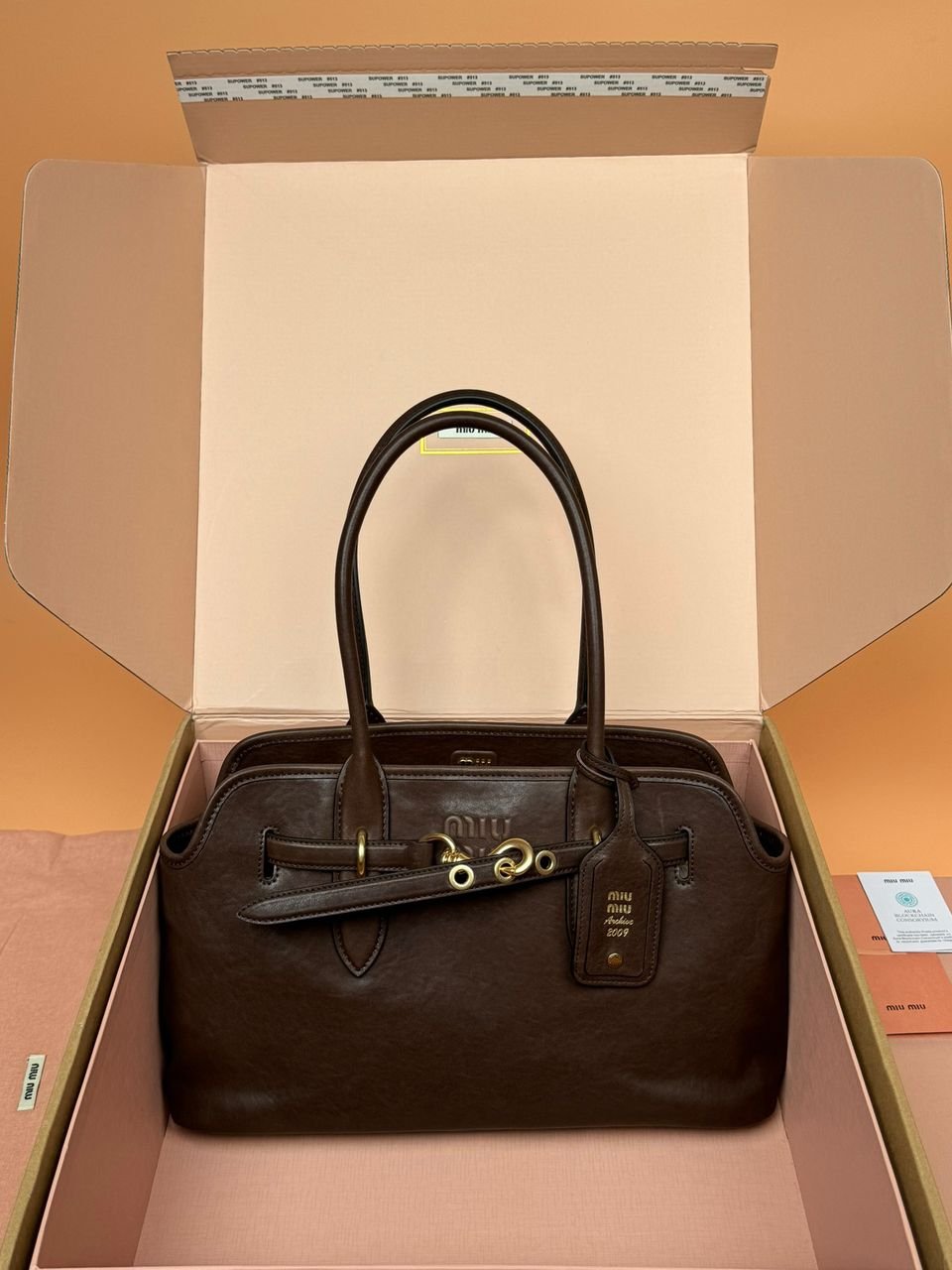 Borsa Miu Miu Aventure media in nappa marrone 31 cm