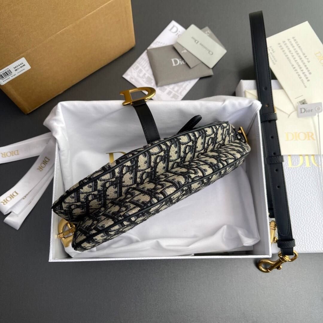 Borsa Dior Saddle in jacquard blu/beige 25,5 cm