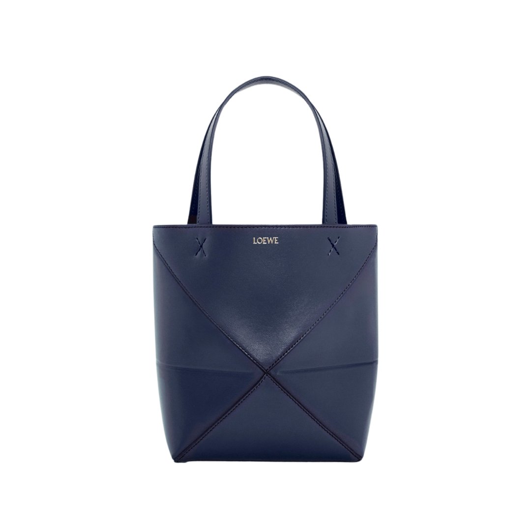 Borsa Loewe Mini Puzzle Fold Tote in pelle blu abyss 20 cm