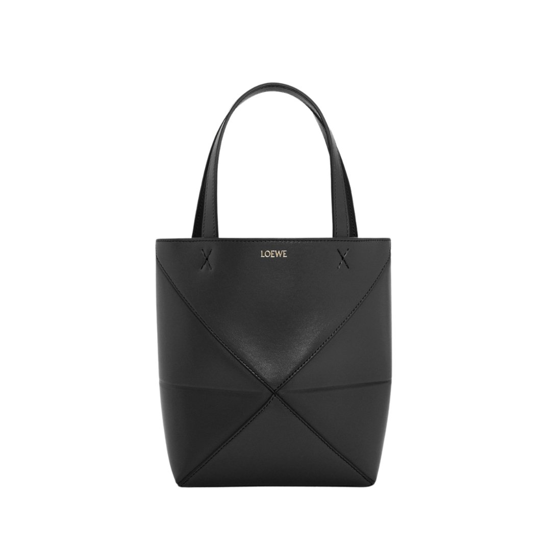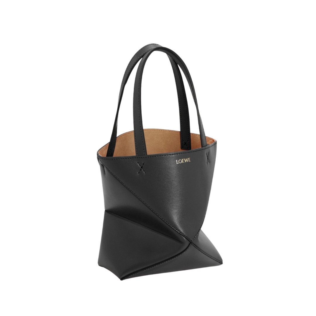 Borsa Loewe Mini Puzzle Fold Tote in pelle nera 20 cm