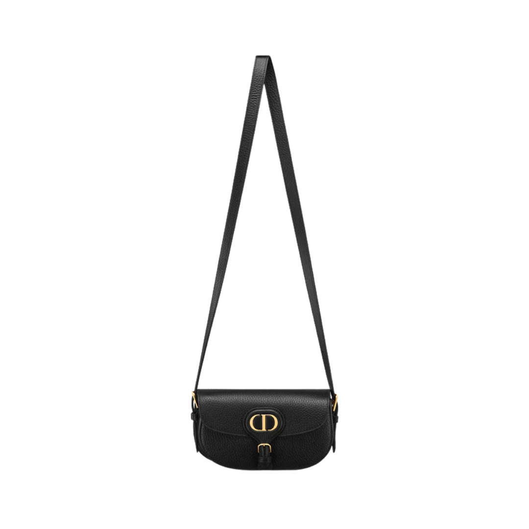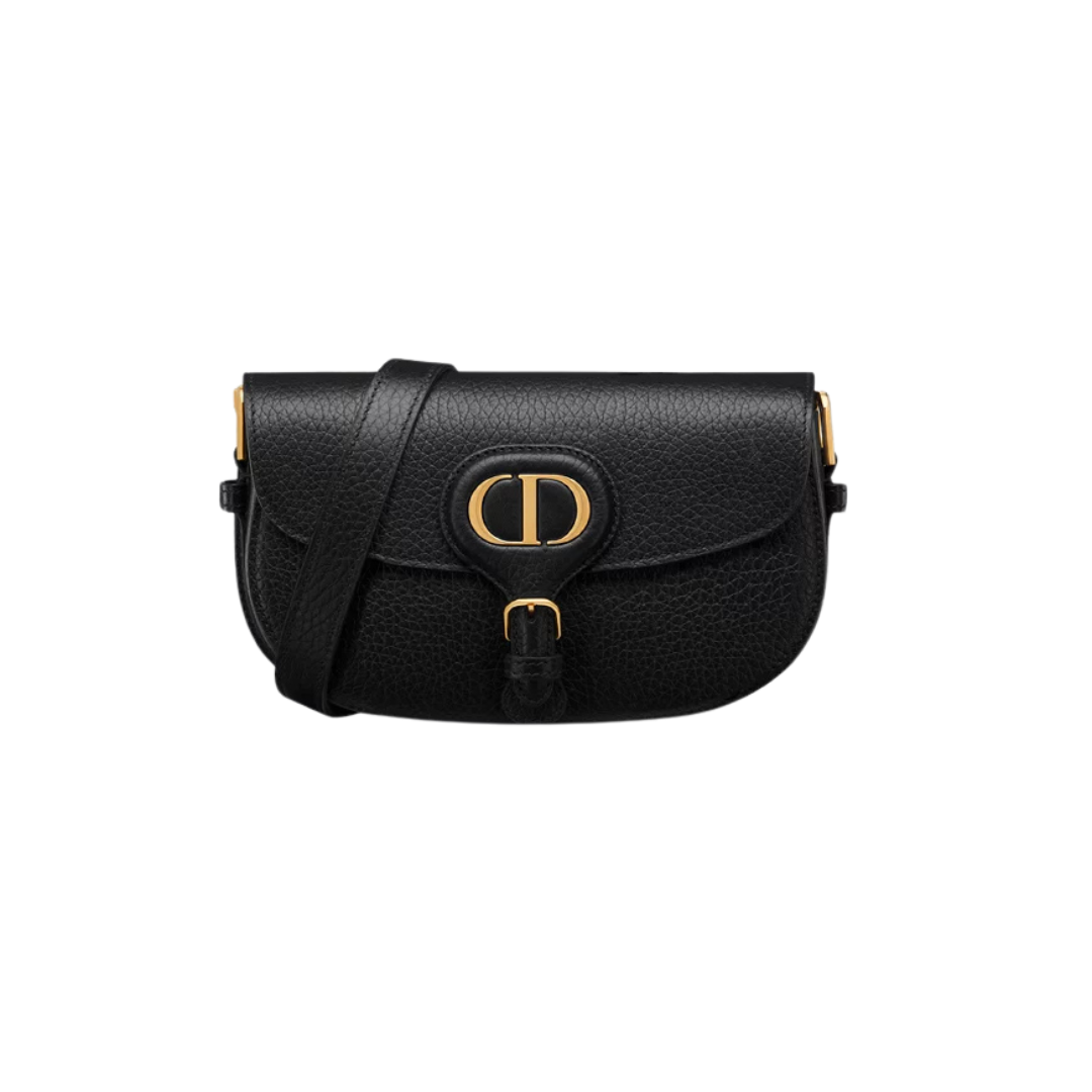 Borsa Dior in pelle nera effetto craquelé con motivo Macrocannage 18 cm