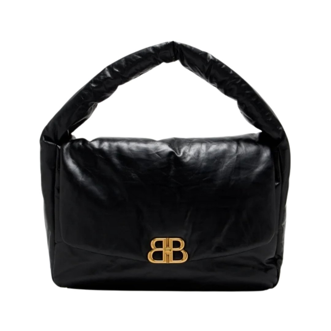 Borsa Balenciaga Monaco L a spalla in pelle nera 43 cm
