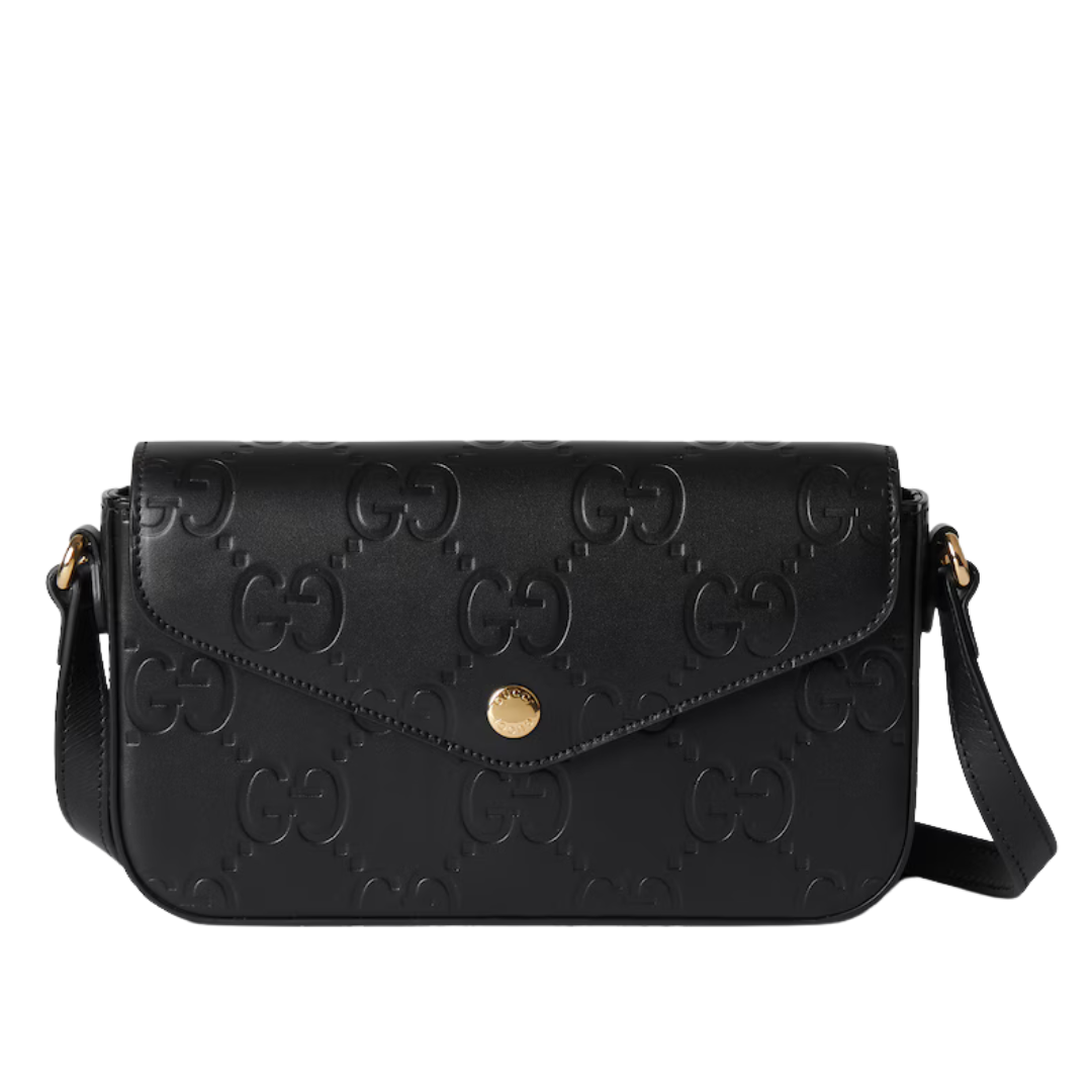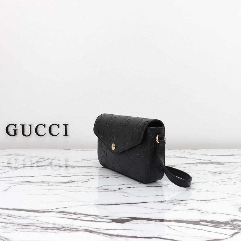 Dimensioni:● Larghezza: 16,5 cm● Altezza: 10 cm● Profondità: 4,5 cm Dettagli:● Materiale: Pelle matelassé con motivo GG● Colore: Nero● Chiusura: