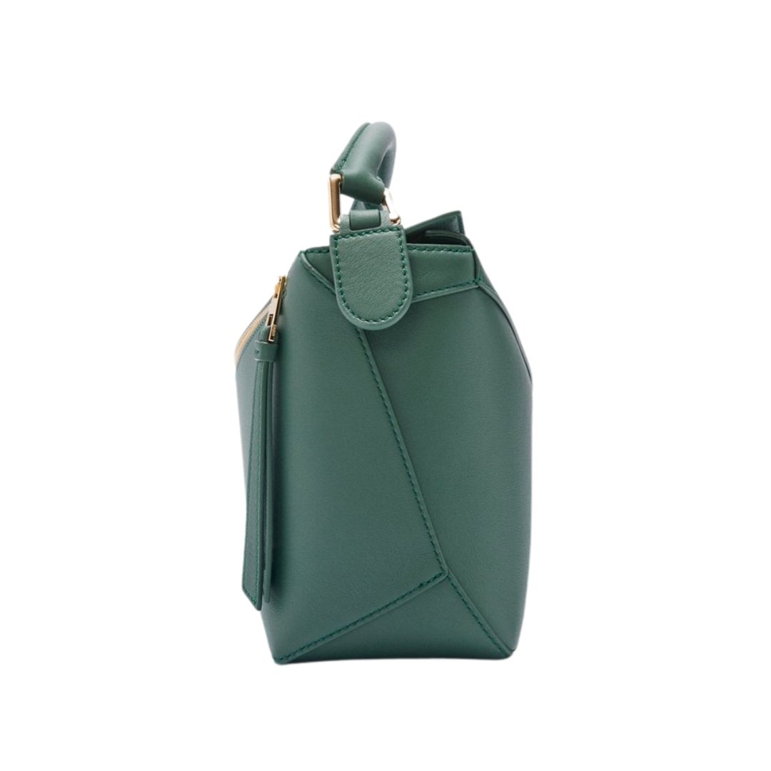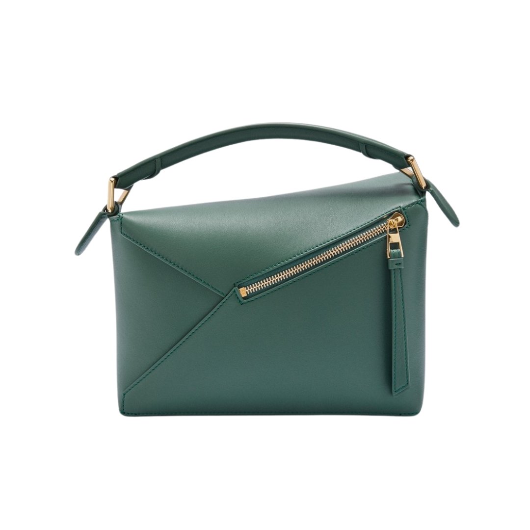 Borsa Loewe Puzzle Small in pelle di vitello verde foresta 16.5 cm