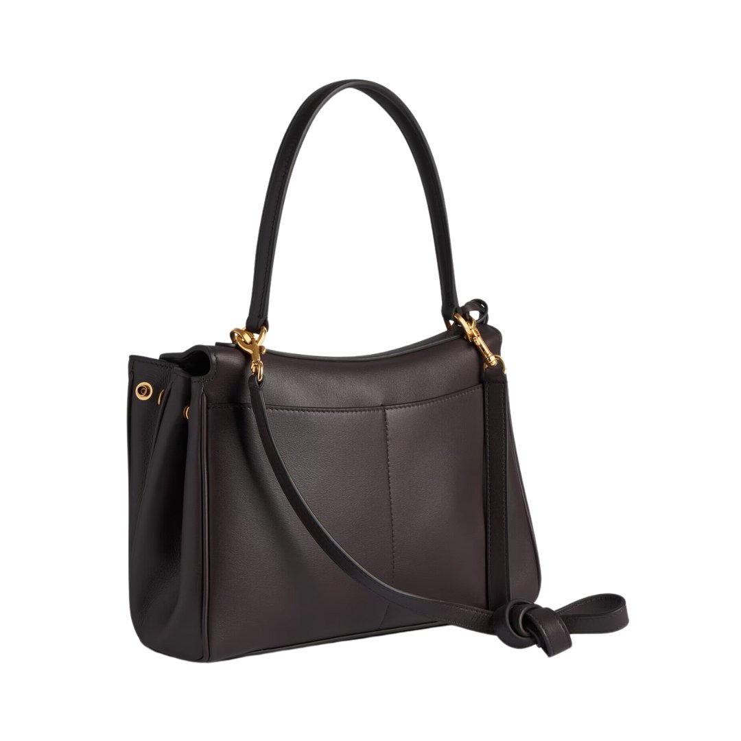 Dimensioni:● Larghezza: 24,5 cm● Altezza: 18 cm● Profondità: 10 cm Dettagli:● Materiale: Pelle di vitello nappata● Colore: Marrone cioccolato● Chiusura: