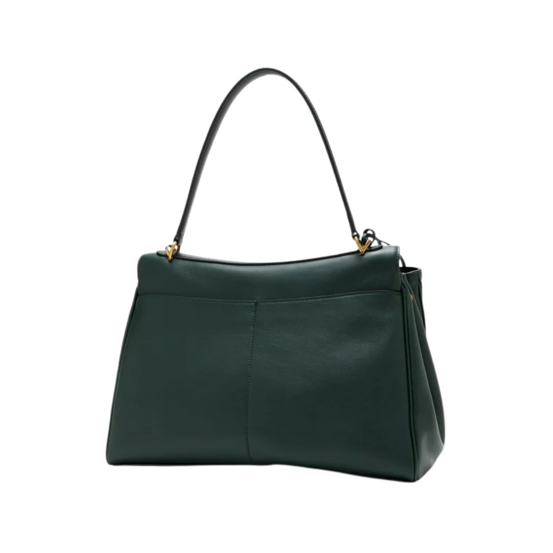 Dimensioni:● Larghezza: 24,5 cm● Altezza: 18 cm● Profondità: 10 cm Dettagli:● Materiale: Pelle di vitello nappata● Colore: Verde vetiver● Chiusura: