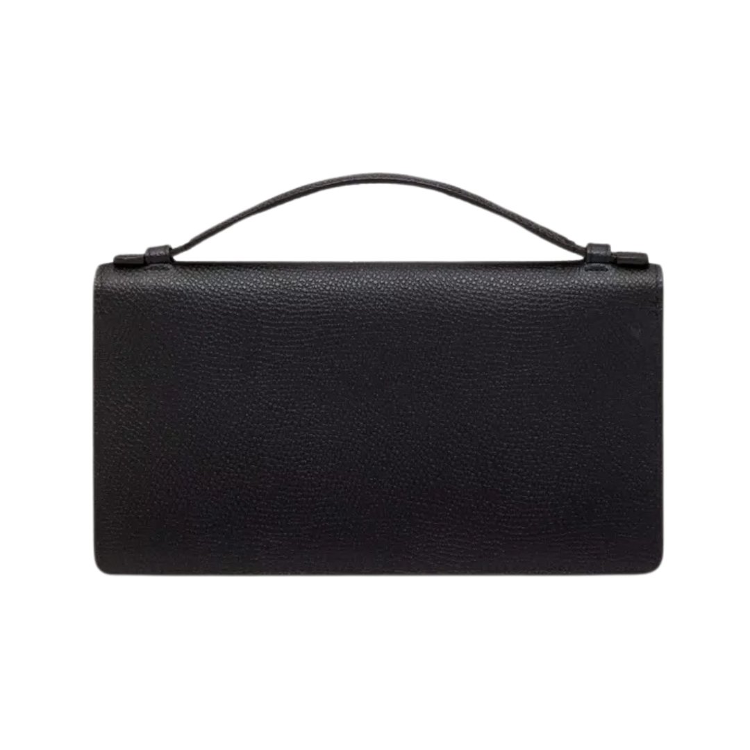 Dimensioni:● Larghezza: 19 cm● Altezza: 11 cm● Profondità: 4 cm Dettagli:● Materiale: Pelle di vitello● Colore: Nero● Chiusura: Patta con
