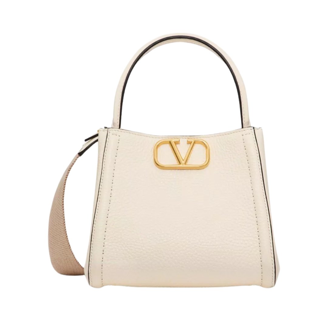 Borsa Valentino Alltime Mini in pelle martellata avorio 19 cm