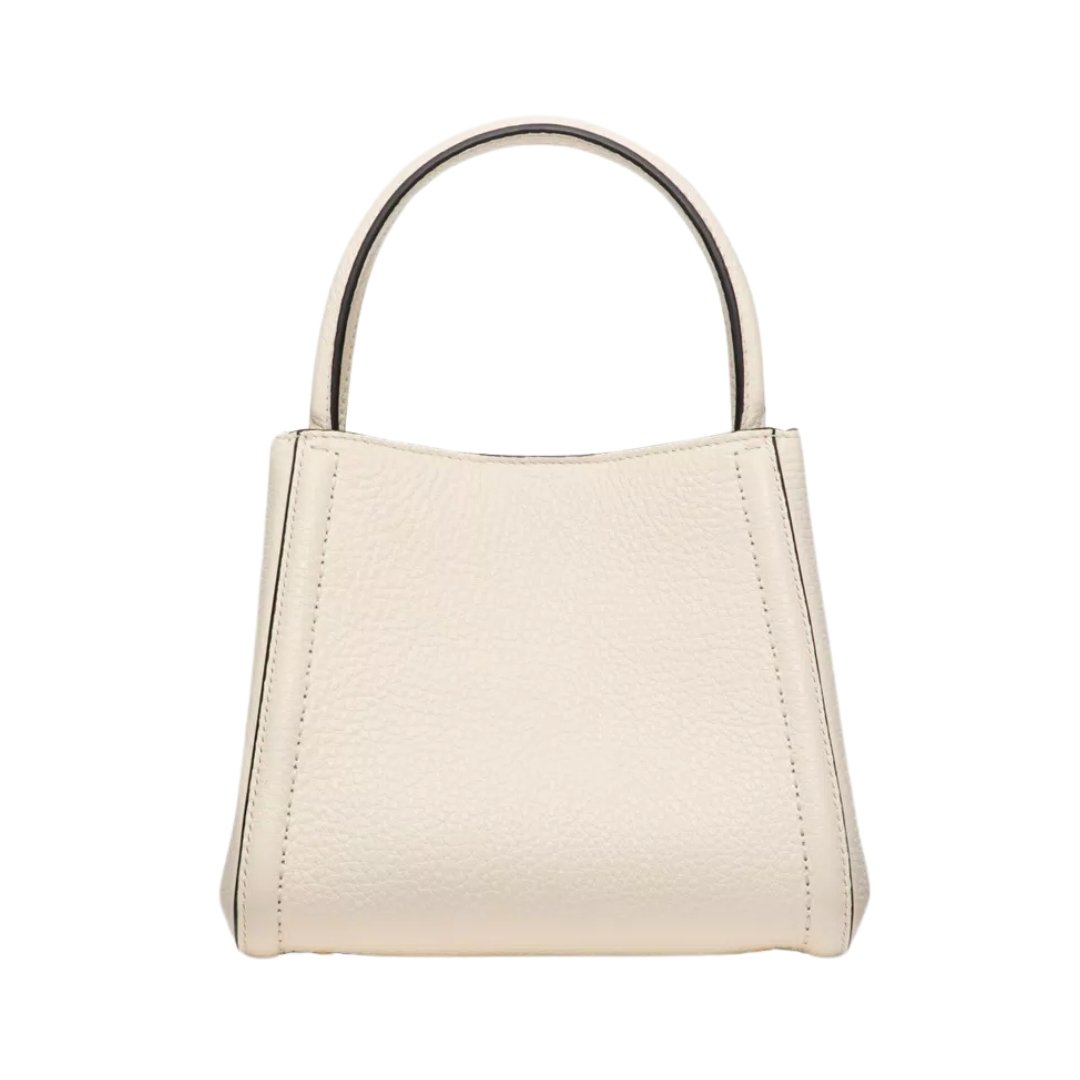 Dimensioni:● Larghezza: 19 cm● Altezza: 17 cm● Profondità: 8 cm Dettagli:● Materiale: Pelle di vitello martellata● Colore: Avorio● Chiusura: Patta
