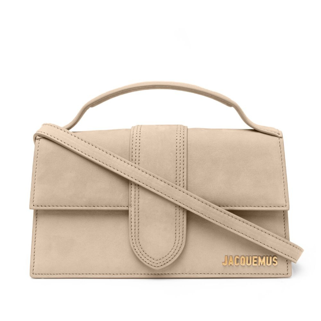 Borsa Jacquemus Le Grand Bambino in suede beige 23 cm