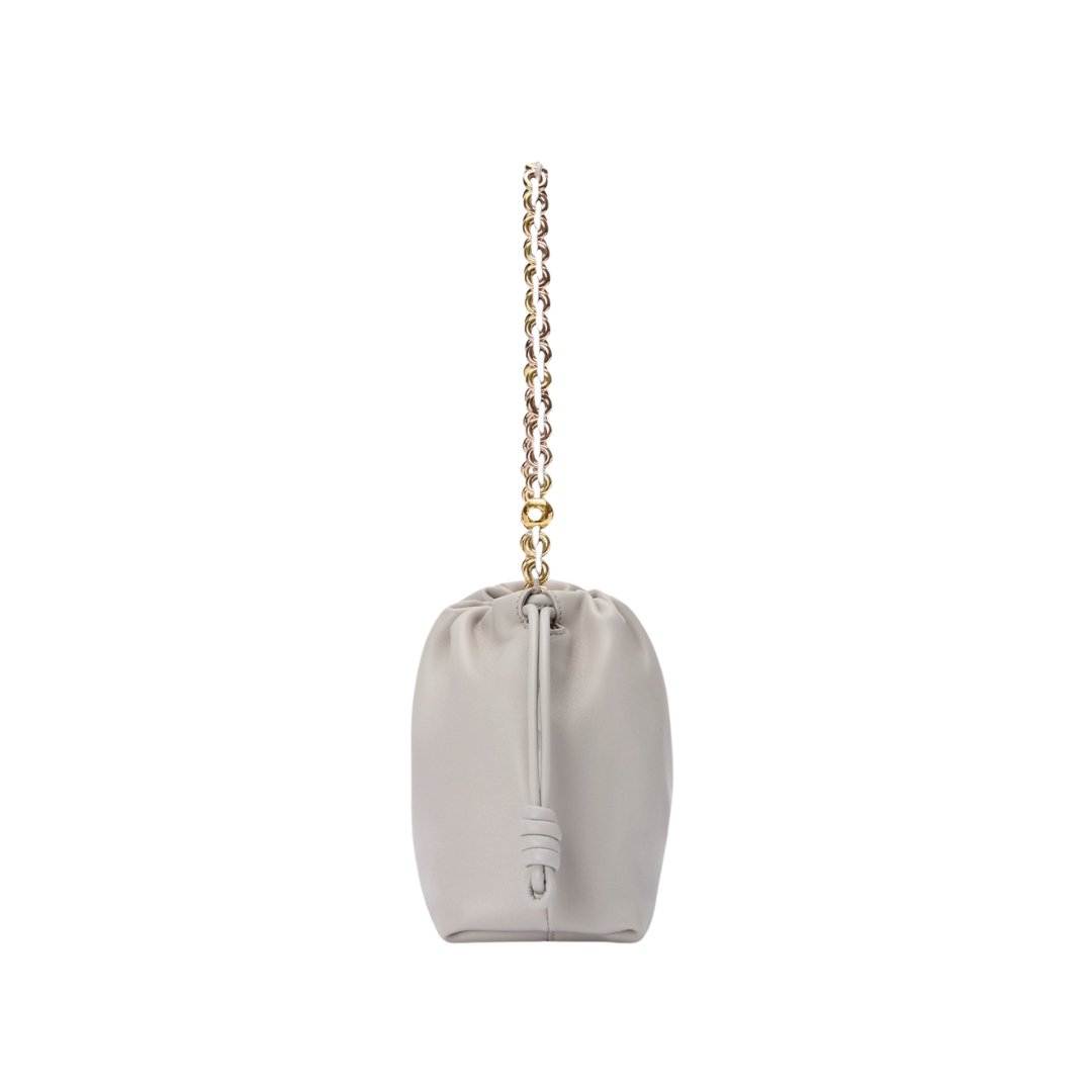 Borsa Loewe Flamenco Mini in nappa grigio perla con catena 20 cm