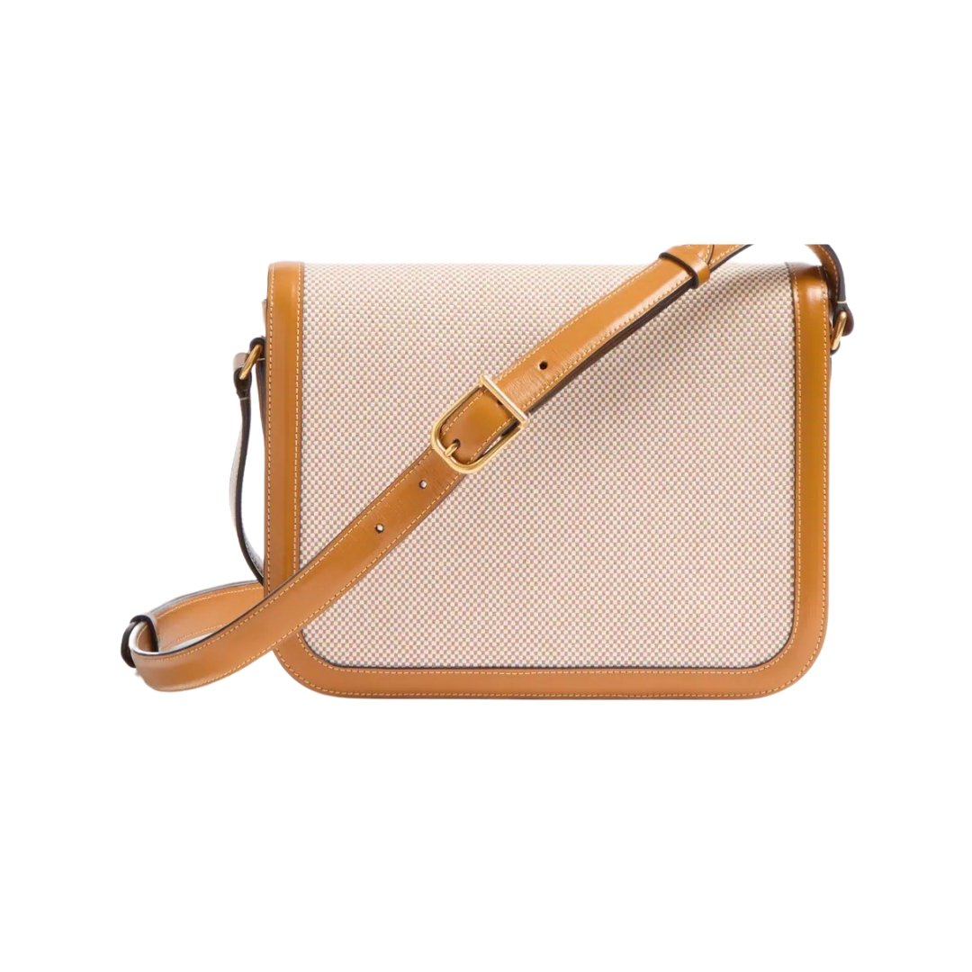 Dimensioni:● Larghezza: 24.5 cm● Altezza: 17 cm● Profondità: 6.5 cm Dettagli:● Materiale: Canvas con finiture in pelle● Colore: Beige e