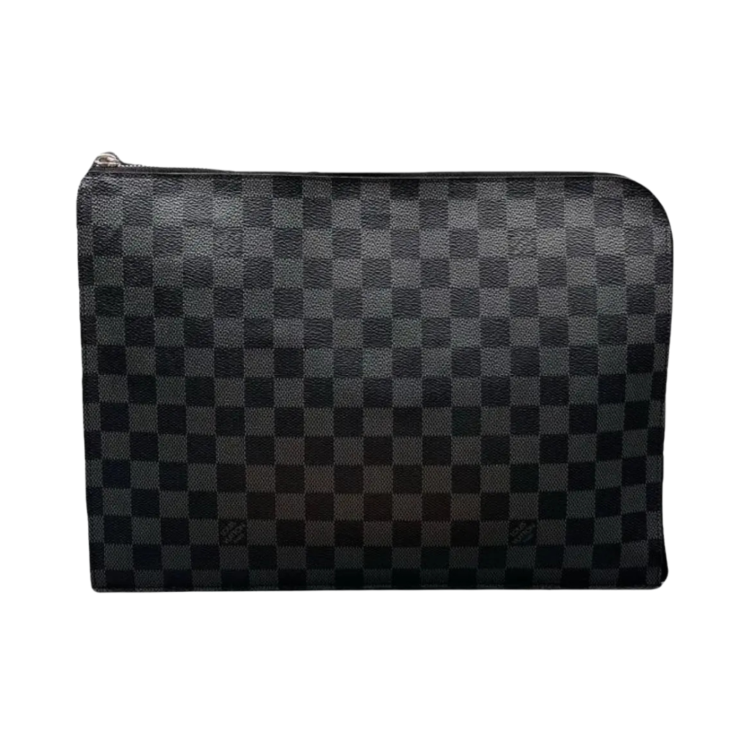 Dimensioni:● Larghezza: 34 cm● Altezza: 26 cm● Profondità: 2 cm Dettagli:● Materiale: Tela Damier Graphite● Colore: Nero e grigio scuro●