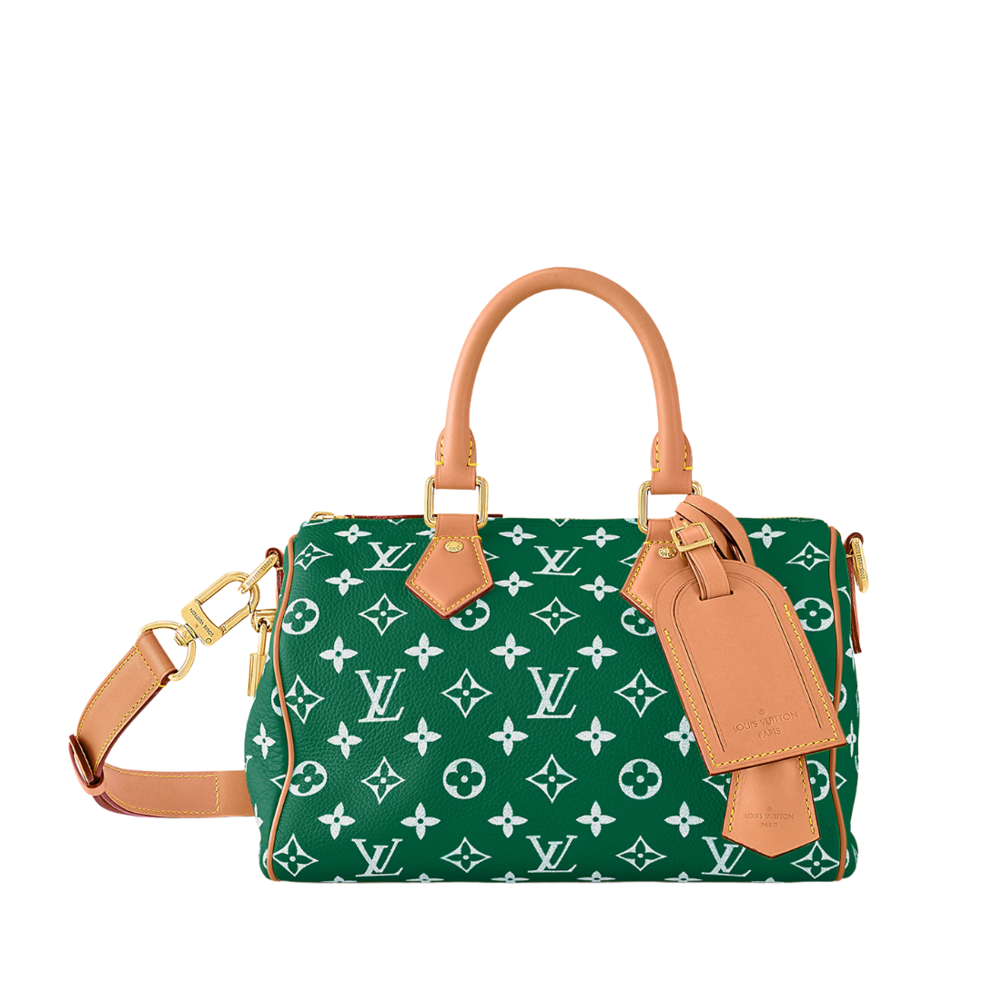 Borsa Louis Vuitton Speedy Bandoulière in tela Monogram verde 25 cm