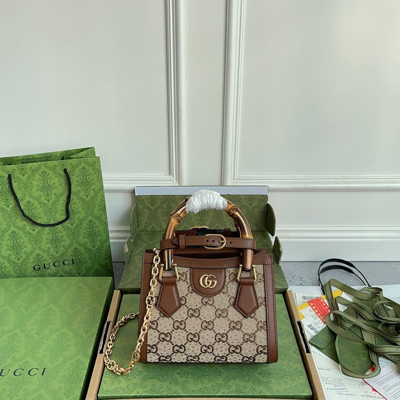 Dimensioni:● Larghezza: 20 cm● Altezza: 25 cm● Profondità: 10 cm Dettagli:● Materiale: Tela GG Supreme● Colore: Beige e marrone con