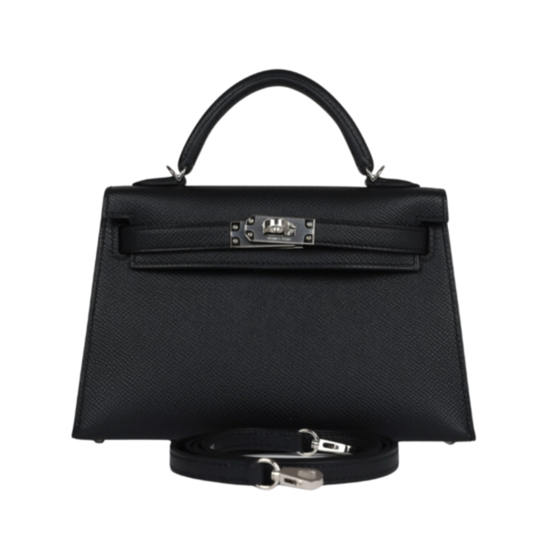 Borsa Hermès Kelly 20 in pelle Epsom nera con hardware palladio