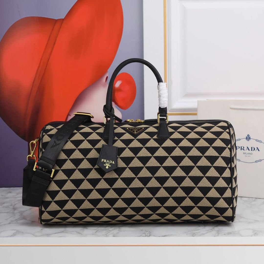 Borsa Prada Symbole Duffle Bag in jacquard beige e nero 44 cm