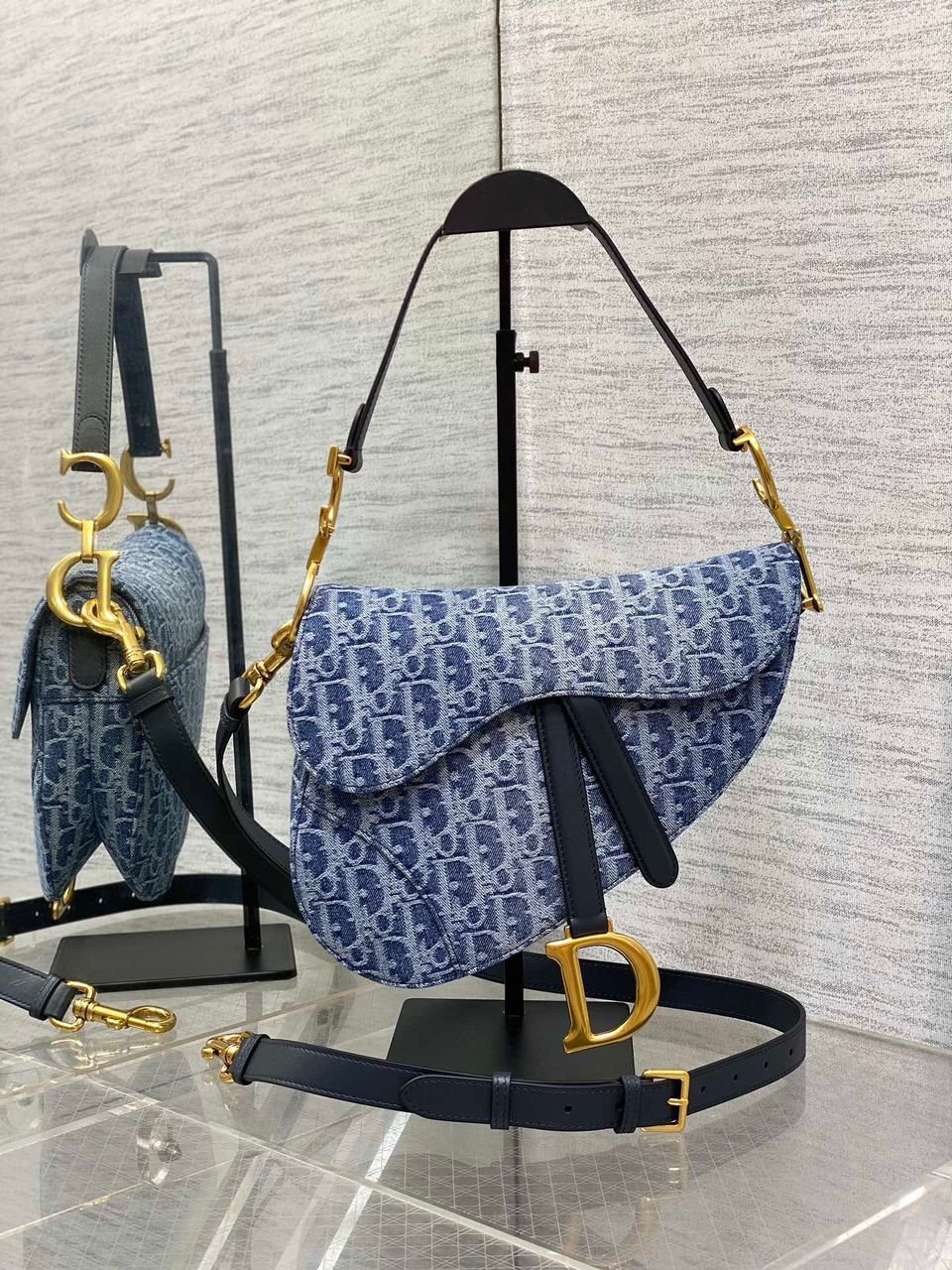 Borsa Dior Saddle Denim Oblique blu 25,5 cm