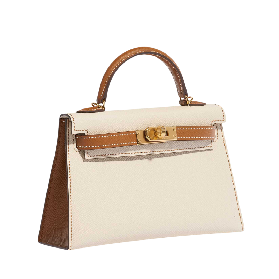 Borsa Hermès Kelly 20 in pelle Epsom crema con dettagli marroni