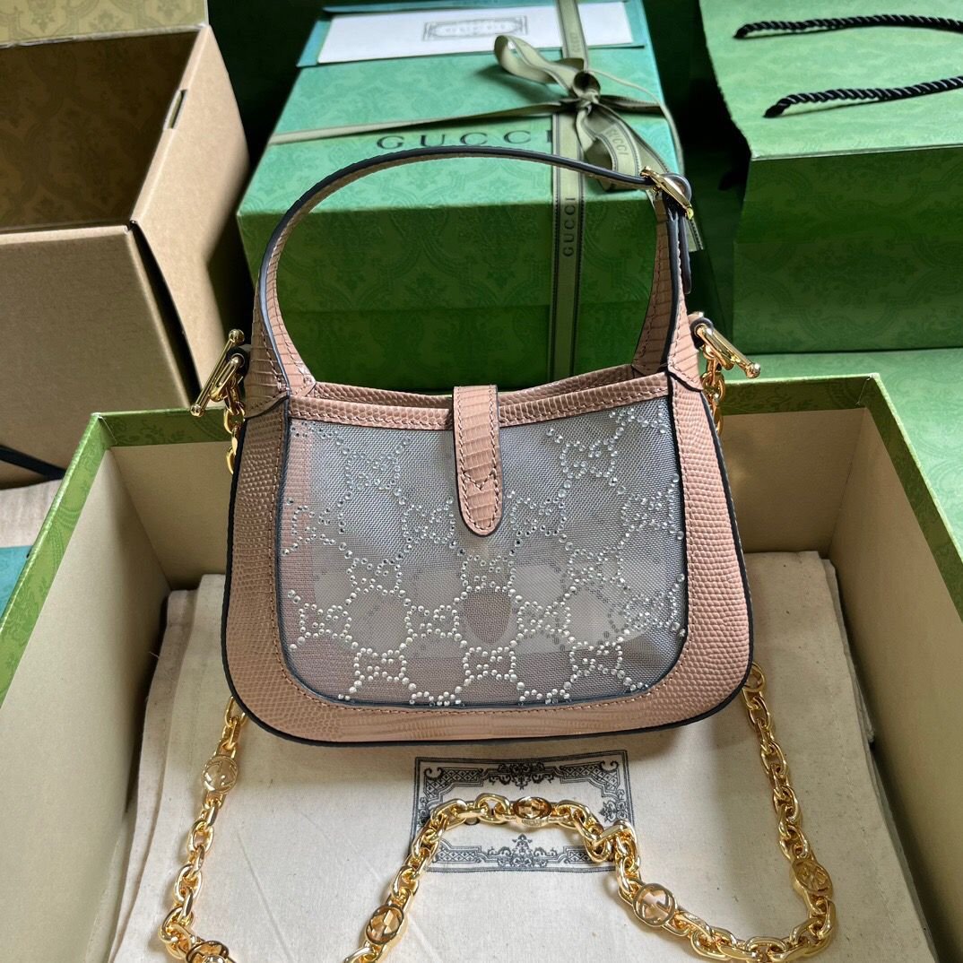 Borsa Gucci Jackie 1961 Mini Crystal in pelle rosa cipria 19 cm