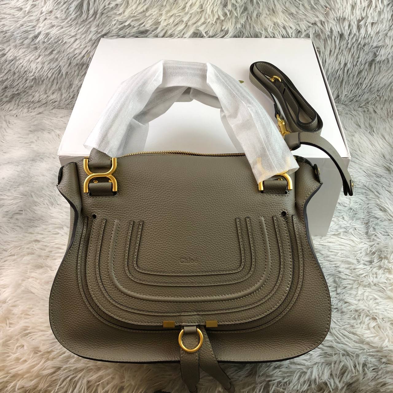 Borsa Chloé Marcie media in pelle grigio-bruna 36 cm