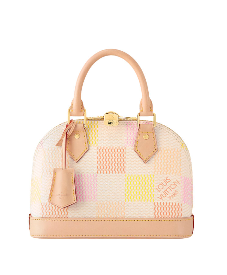 Dimensioni:● Larghezza: 31 cm● Altezza: 28 cm● Profondità: 14 cm Dettagli:● Materiale: Tela Damier Azur● Colore: Pesca e bianco a