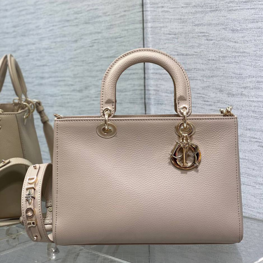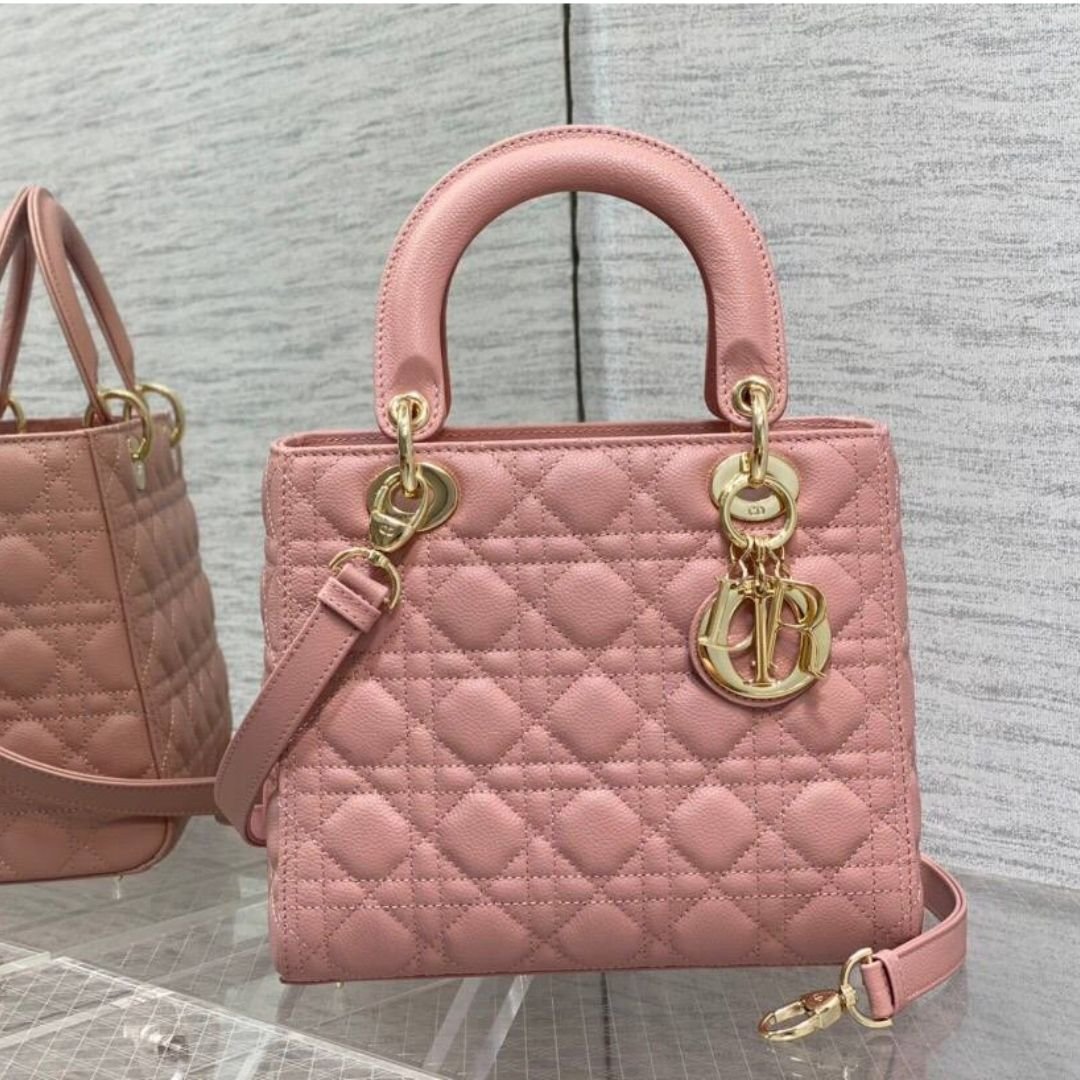 Borsa Dior Lady in pelle beige rosato 24 cm