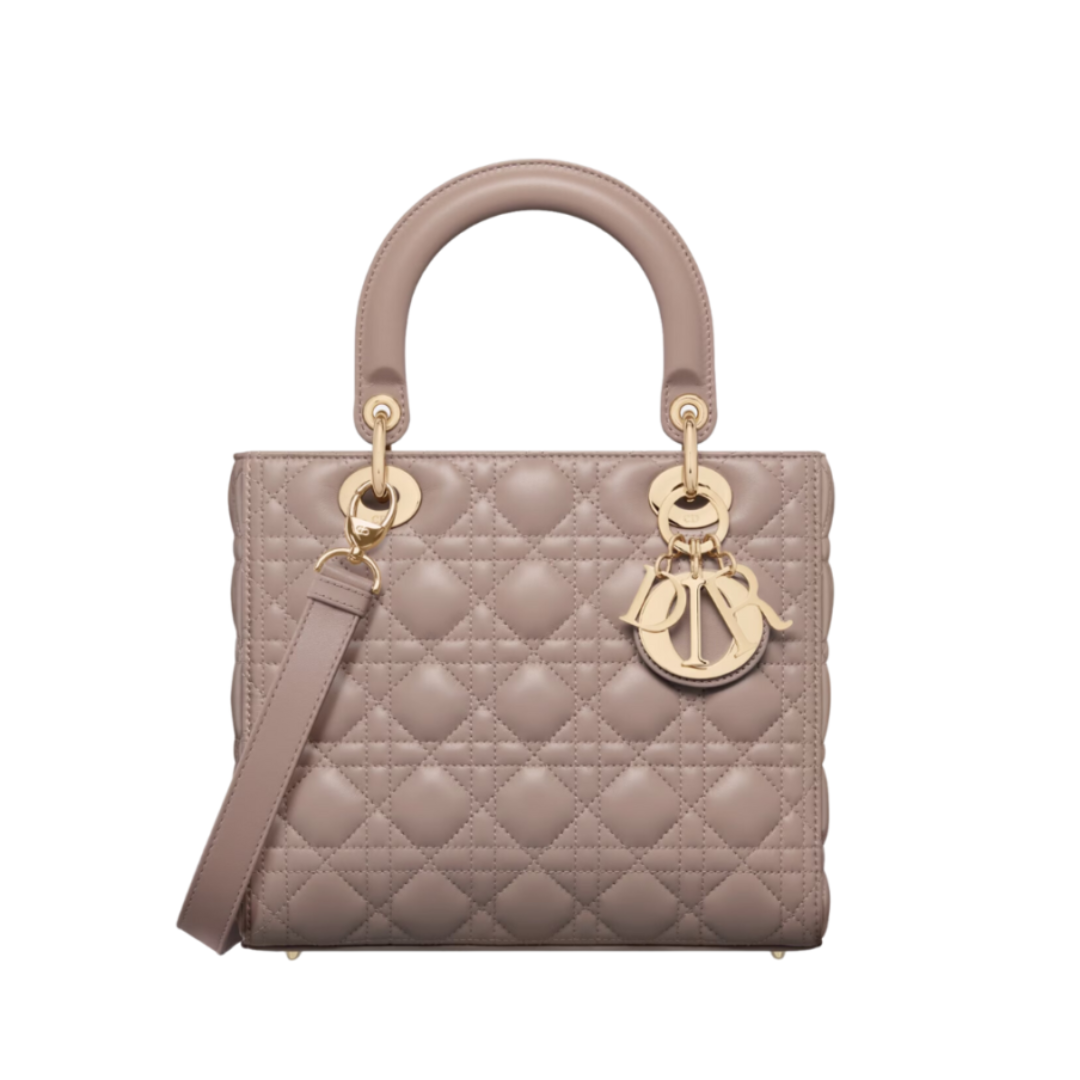 Borsa Dior Lady in pelle taupe 24 cm
