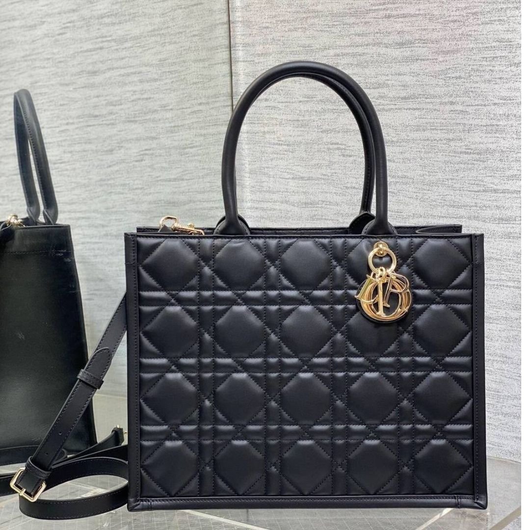 Borsa Dior Book Tote media Macrocannage nera 36,5 cm