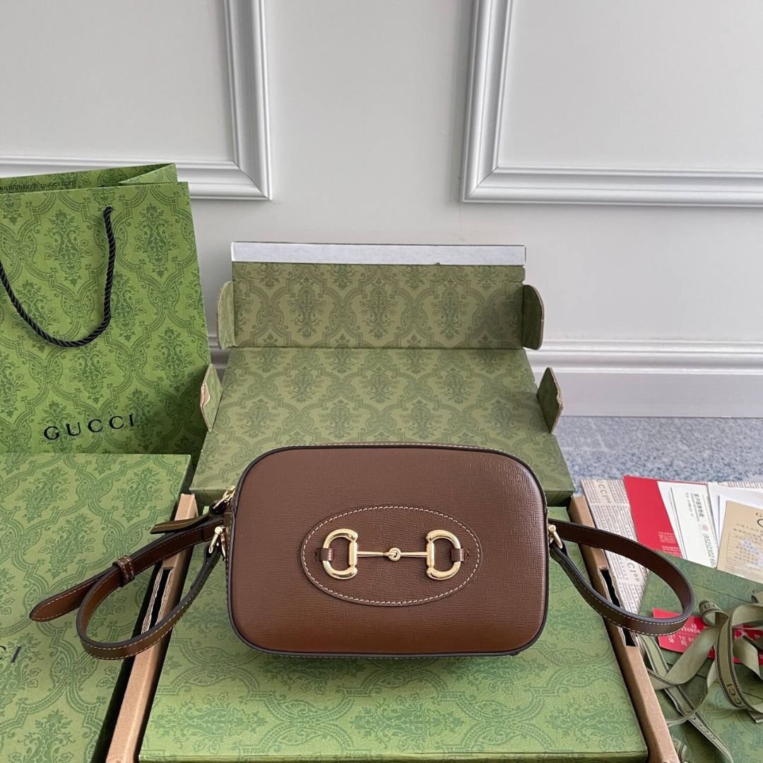 Borsa Gucci Horsebit 1955 camera bag marrone 20 cm
