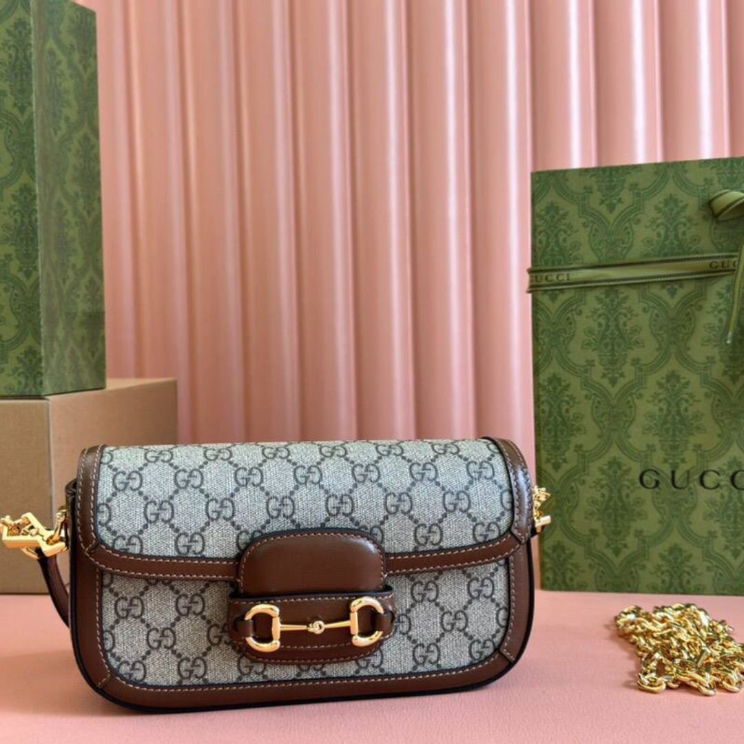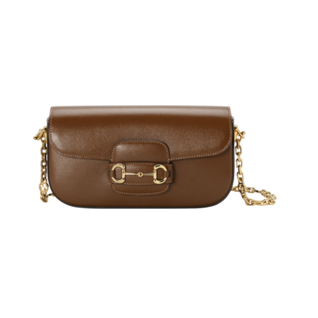 Borsa Gucci Horsebit 1955 mini con catena marrone 24 cm