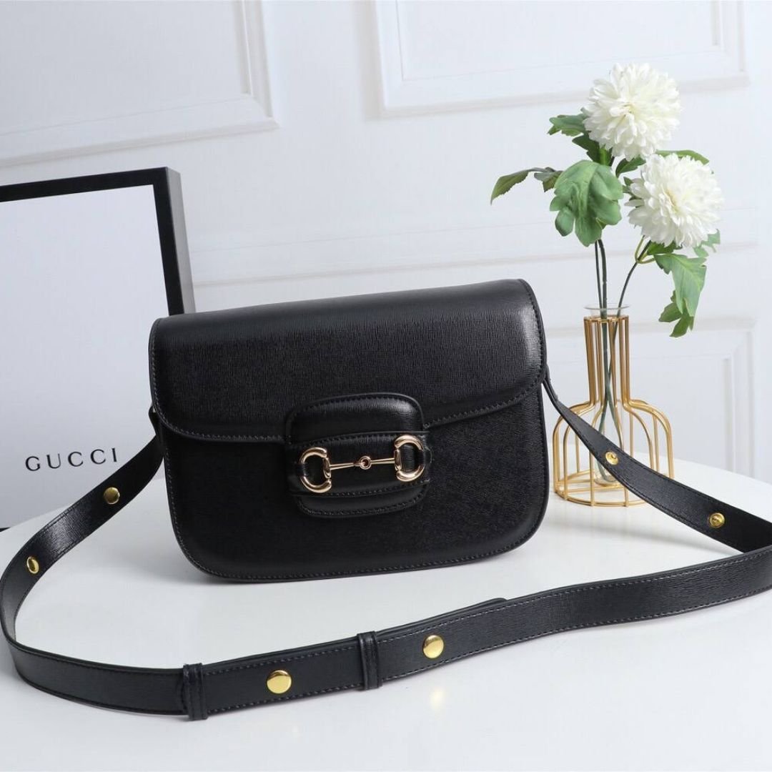 Borsa Gucci Horsebit 1955 camera bag in pelle nera 20 cm