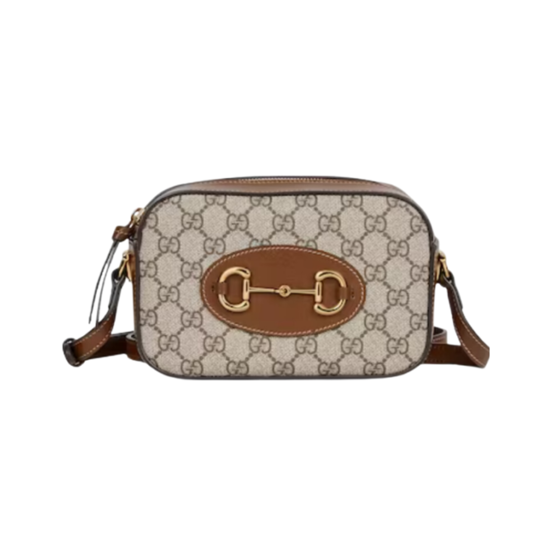 Borsa Gucci Horsebit 1955 camera bag in GG Supreme beige/marrone 20 cm