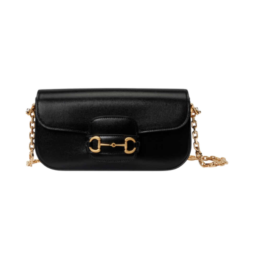 Borsa Gucci Horsebit 1955 slim in pelle nera 32 cm