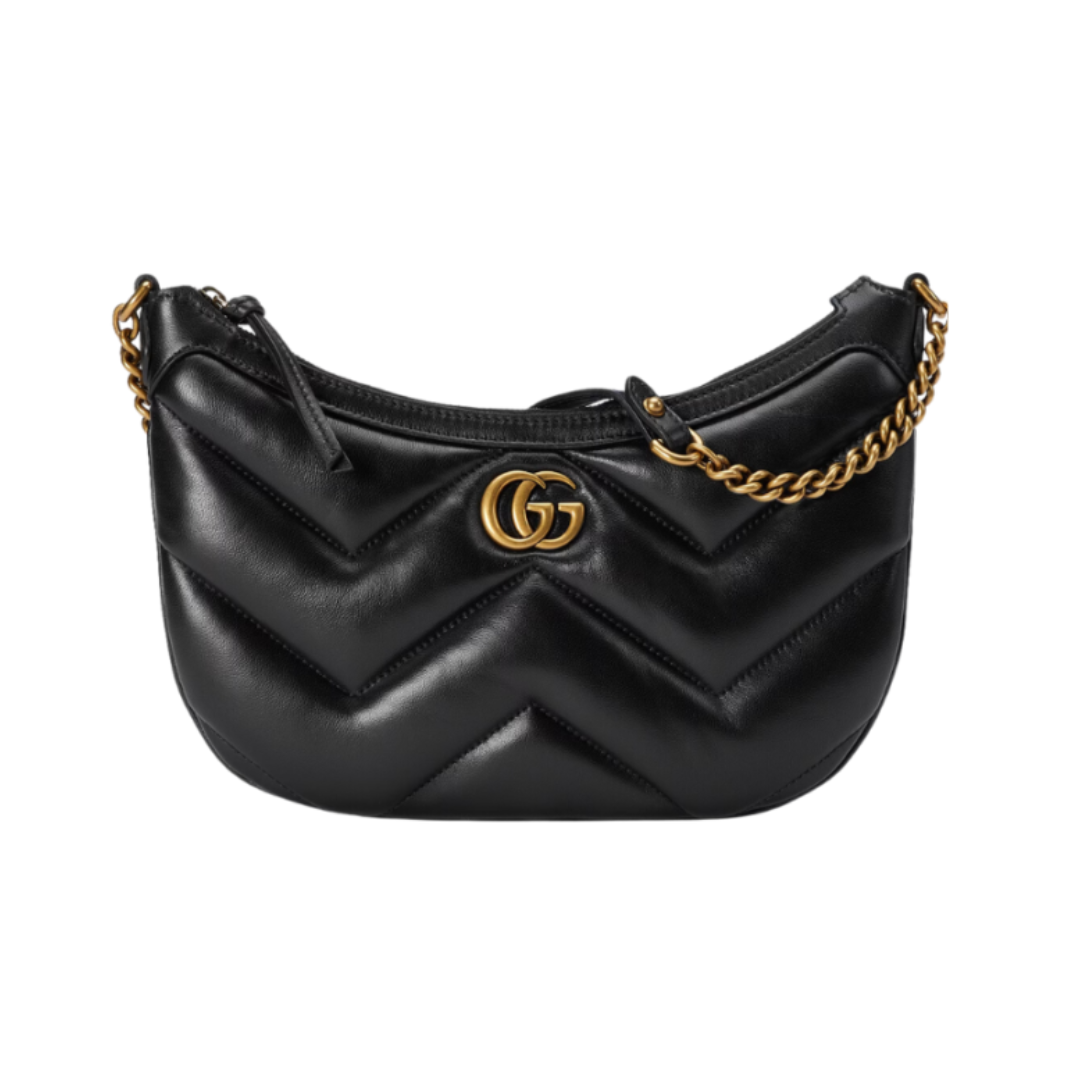 Borsa Gucci GG Marmont matelassé nera con catena dorata 22 cm