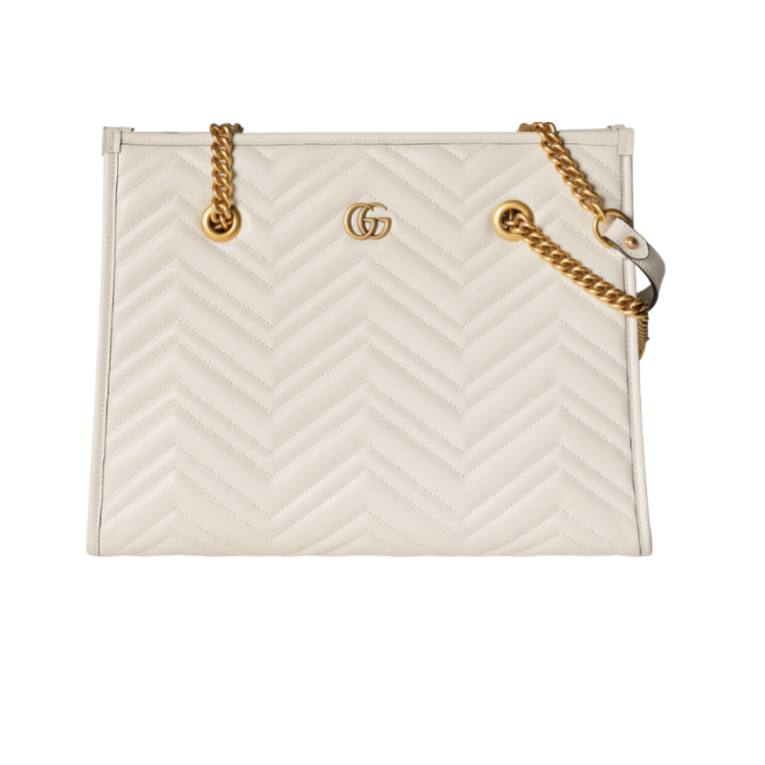 Borsa Gucci GG Marmont shopper in pelle color crema 34 cm