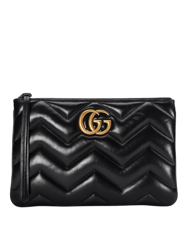 Dimensioni:● Larghezza: 31 cm● Altezza: 20 cm● Profondità: 7 cm Dettagli:● Materiale: Pelle matelassé● Colore: Nero● Chiusura: Zip superiore● Logo: