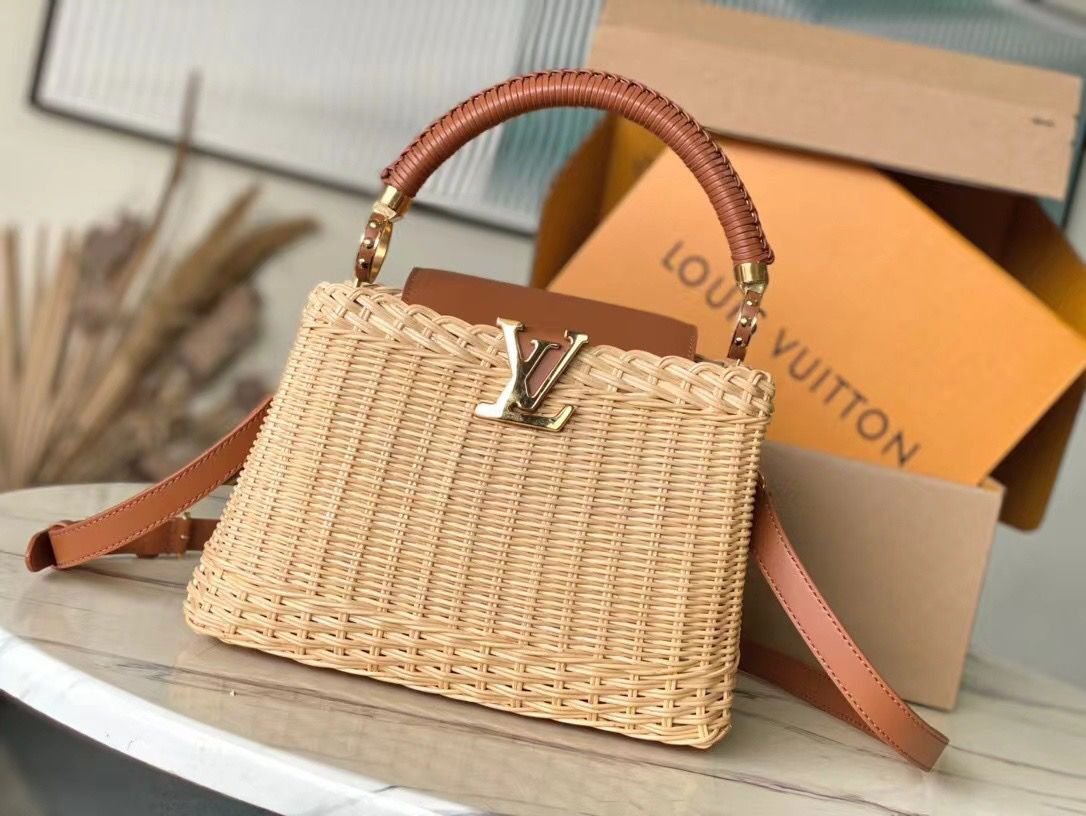 Dimensioni:● Larghezza: 25 cm● Altezza: 19 cm● Profondità: 15 cm Dettagli:● Materiale: Tela Monogram con finiture in vacchetta naturale● Colore:
