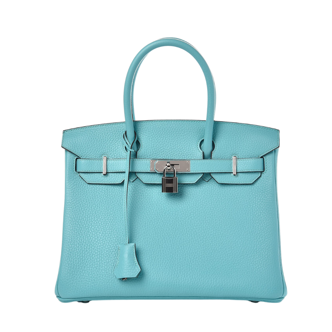 Borsa Hermès Birkin 30 in pelle Taurillon Clémence Bleu Atoll