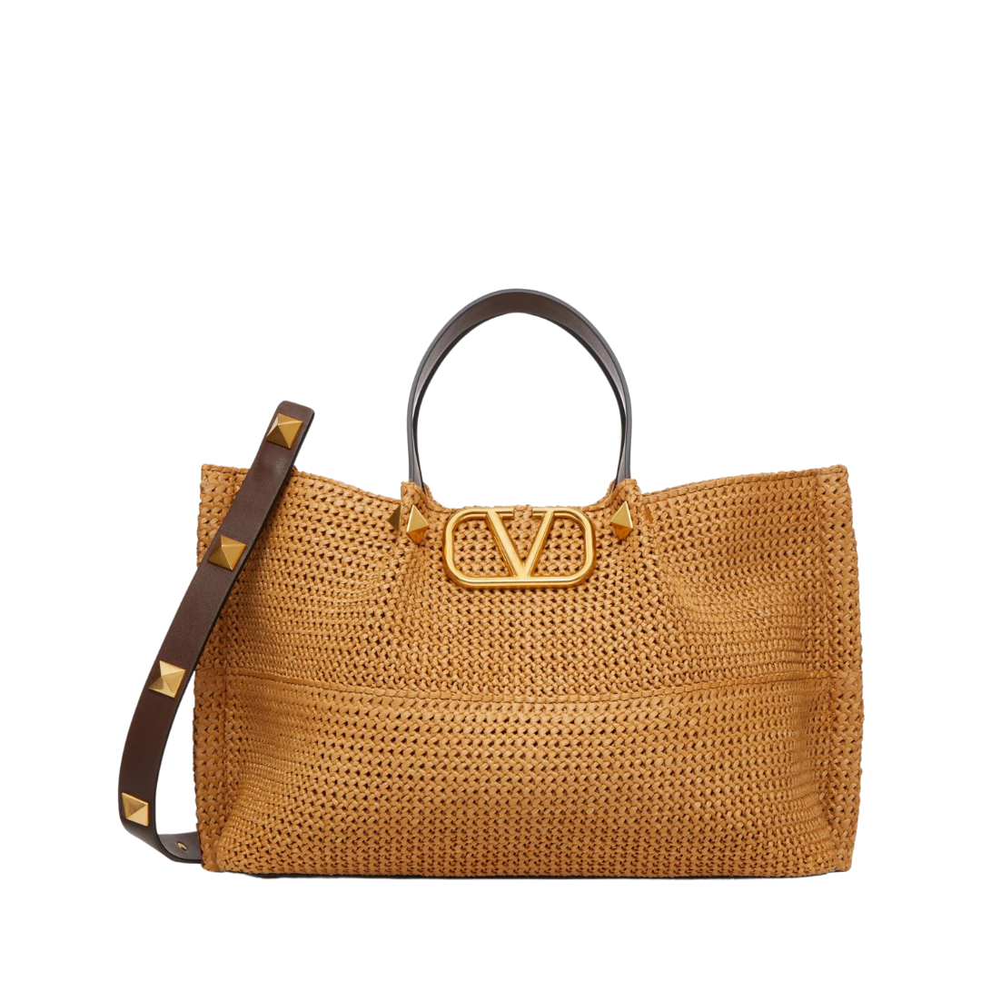 Borsa Valentino Garavani Le Troisième in rafia naturale 35 cm